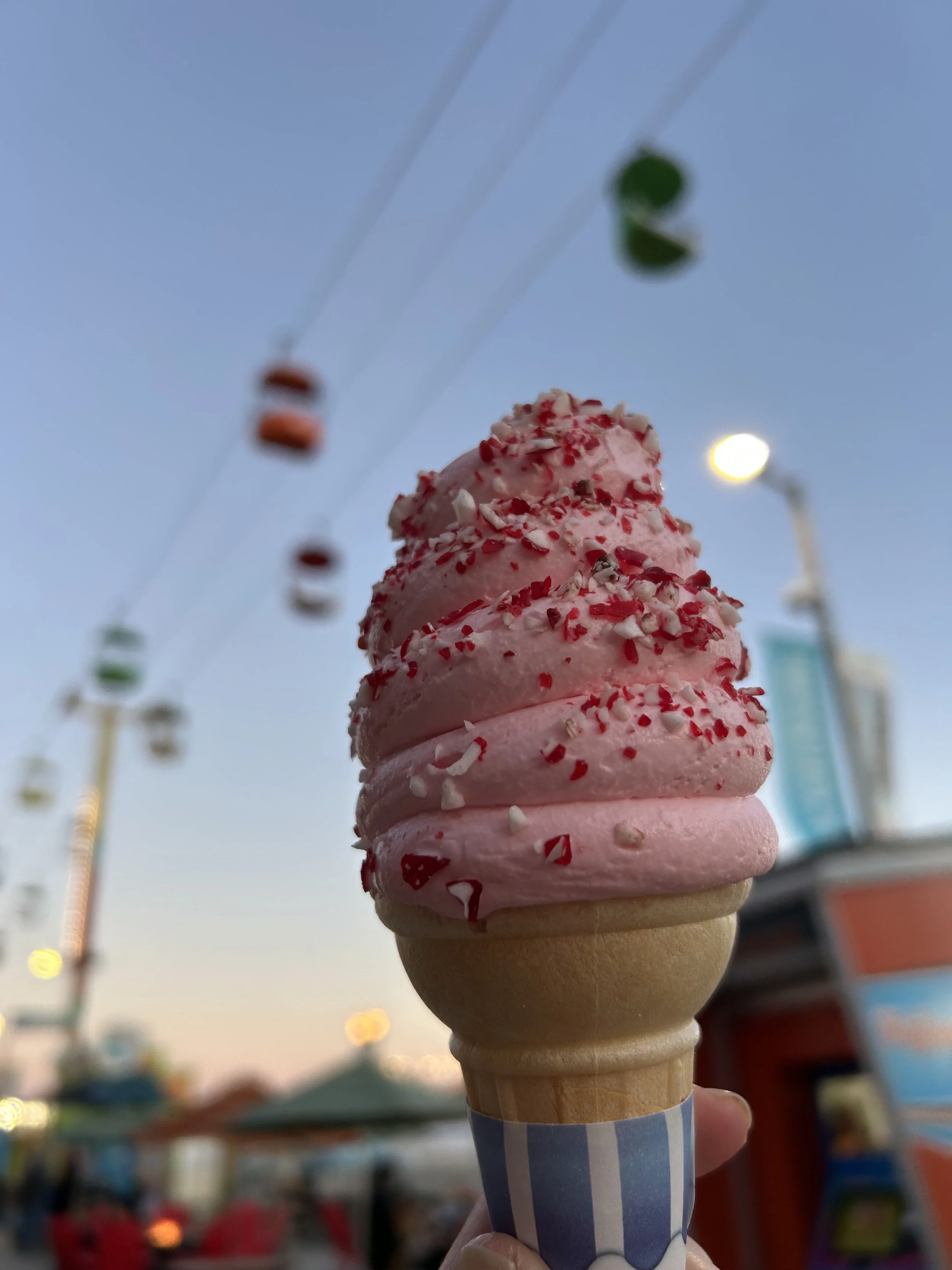 As always, entry to the Beach Boardwalk is free. Parking is $15 for the entire day. Rides are running from 12-7PM, and starting at 5 they are just $2 per ride! If you plan to come for the day, make sure to purchase a wristband online (and a day in advance) to save 10%. If you plan to come closer to 5, load up a My Boardwalk card and pay by the ride. When you add $50, get 5 bonus points. When you add $100, get 15 bonus points. My Boardwalk cards can be used across the Boardwalk for rides, food, or holiday shopping. Right now, there are a lot of festive treats like hot chocolate and peppermint ice cream. S’mores kits are available starting at 5PM, and there are fire pits that are first come, first served.